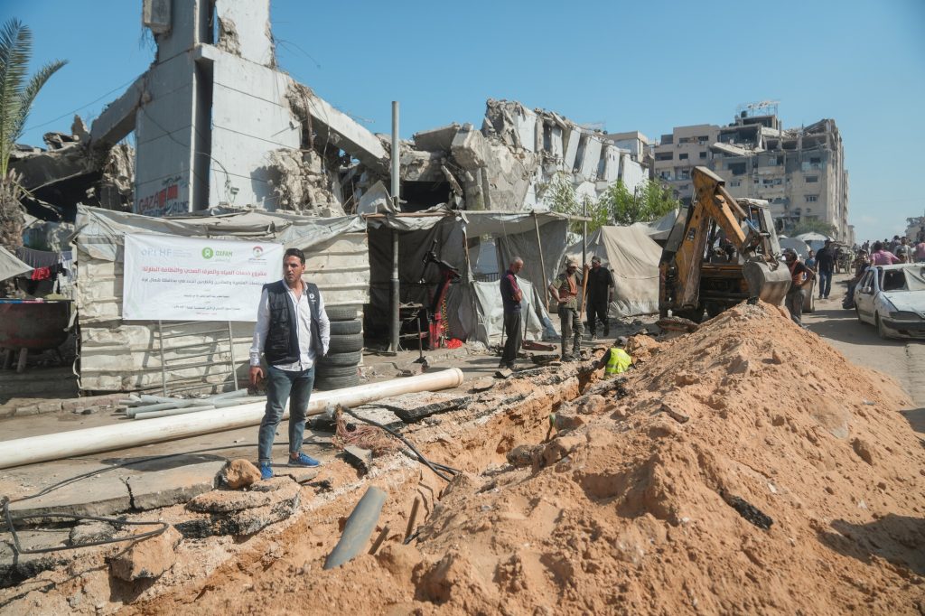 Oxfam staff Osama is checking on the water pipelines connection and networks in Gaza City. Photo: Alef Multimedia/Oxfam